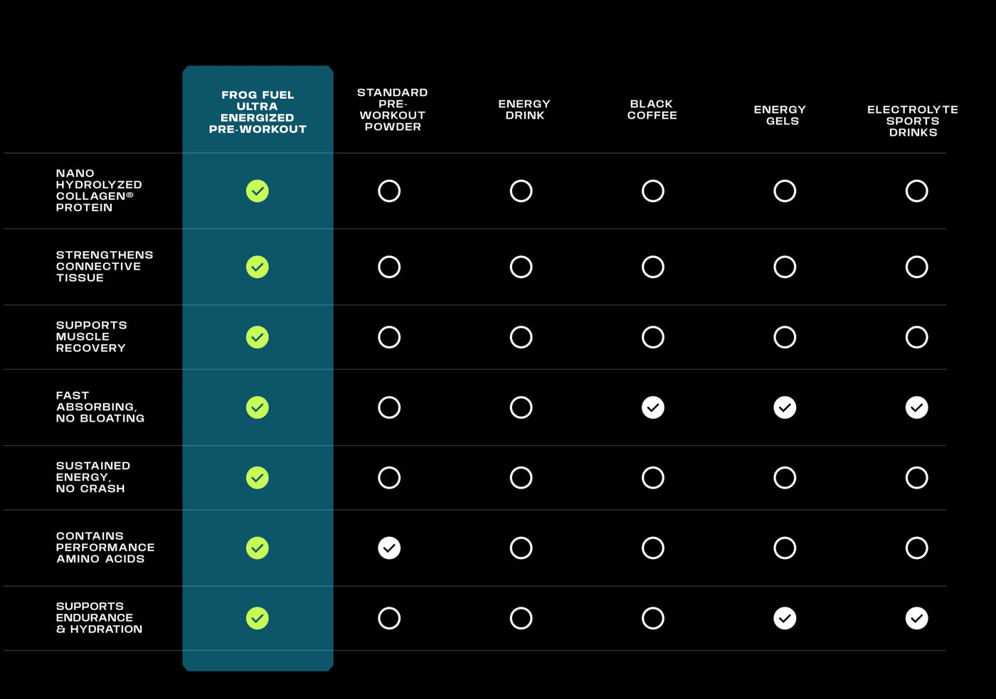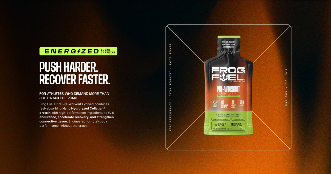 Frog Fuel Ultra is powered by Nano Hydrolyzed Collagen® Protein to support rapid recovery of connective tissue and muscles—helping you build unbreakable strength.