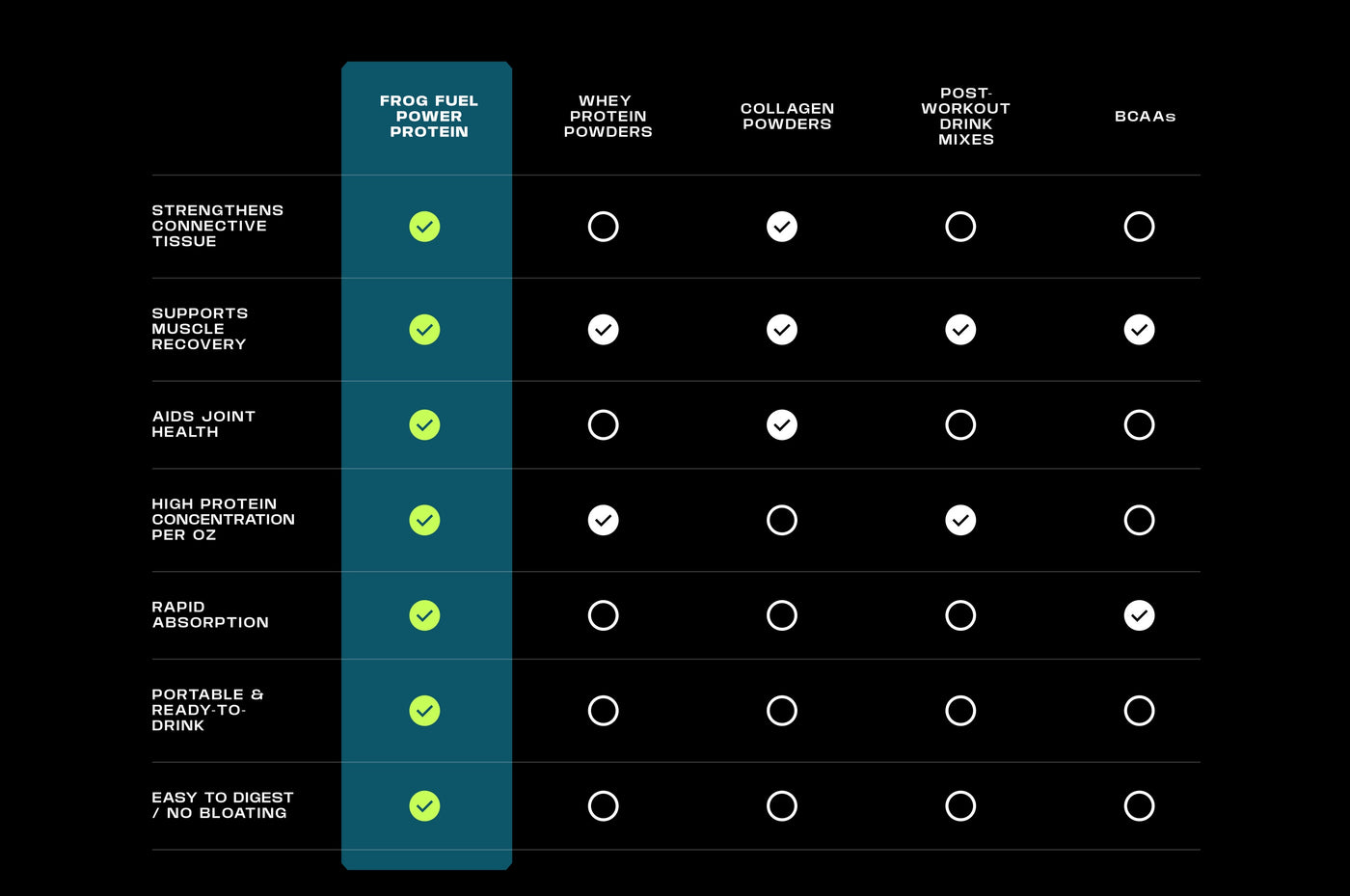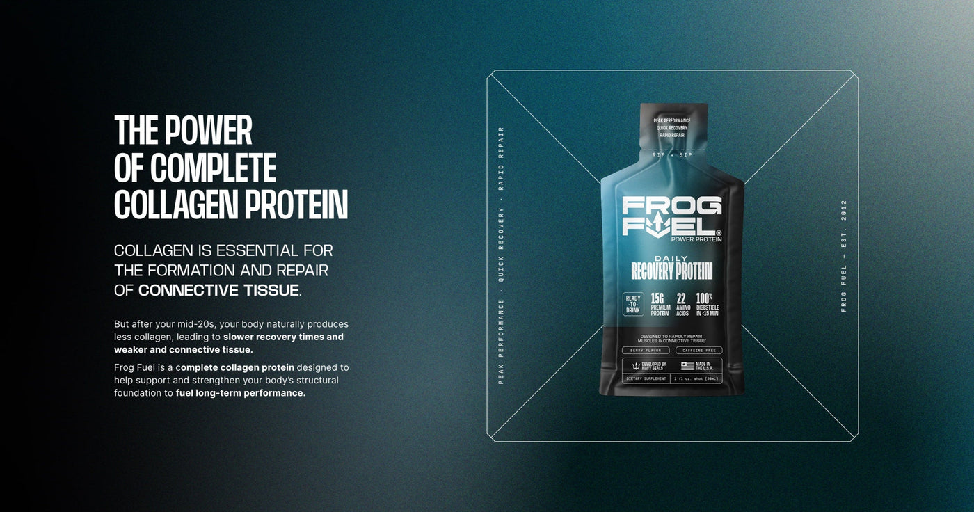 Connective tissue repair and growth can take months. Frog Fuel gives your body the daily support it needs to stay unbreakable for the long-run.